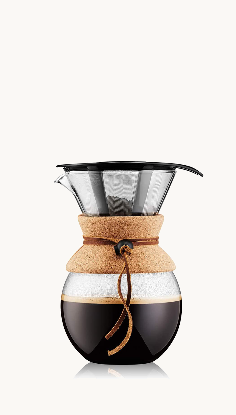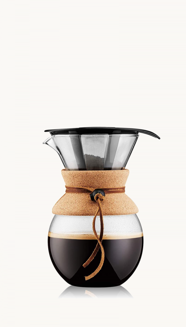 Bodum Pour Over Coffee Maker with Permanent Filter, Glass, 34 Ounce, 1 Liter, Cork Band