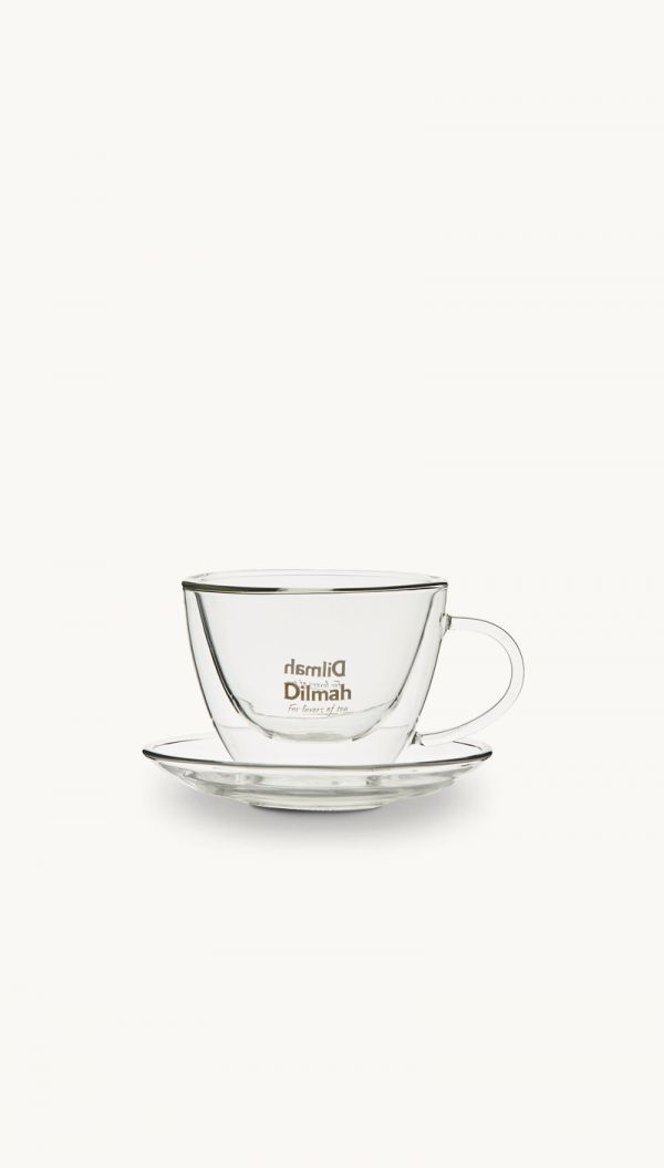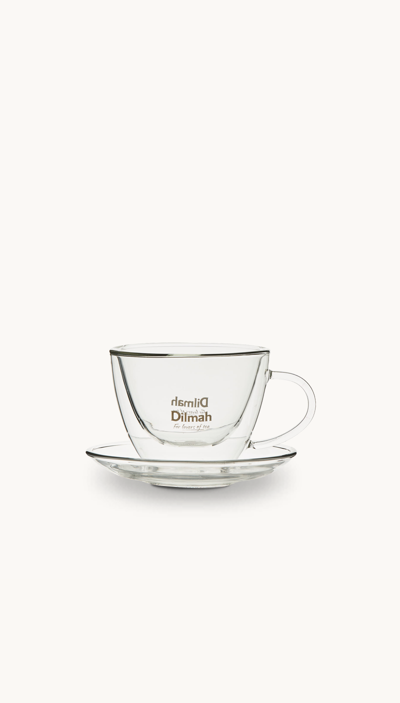 An elegant double-walled cup and saucer for a 220ml serving of your favourite Dilmah tea. The glass mug has been specially designed to enhance the visual experience of brewing Luxury Leaf tea bags while insulating the drinker from the temperature of the tea.