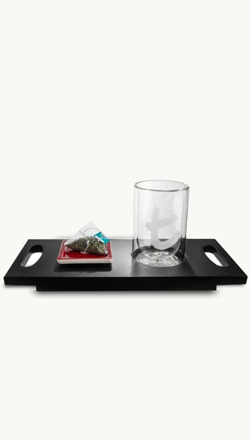 This tray is delivered without Double wall glass and tea Bag.