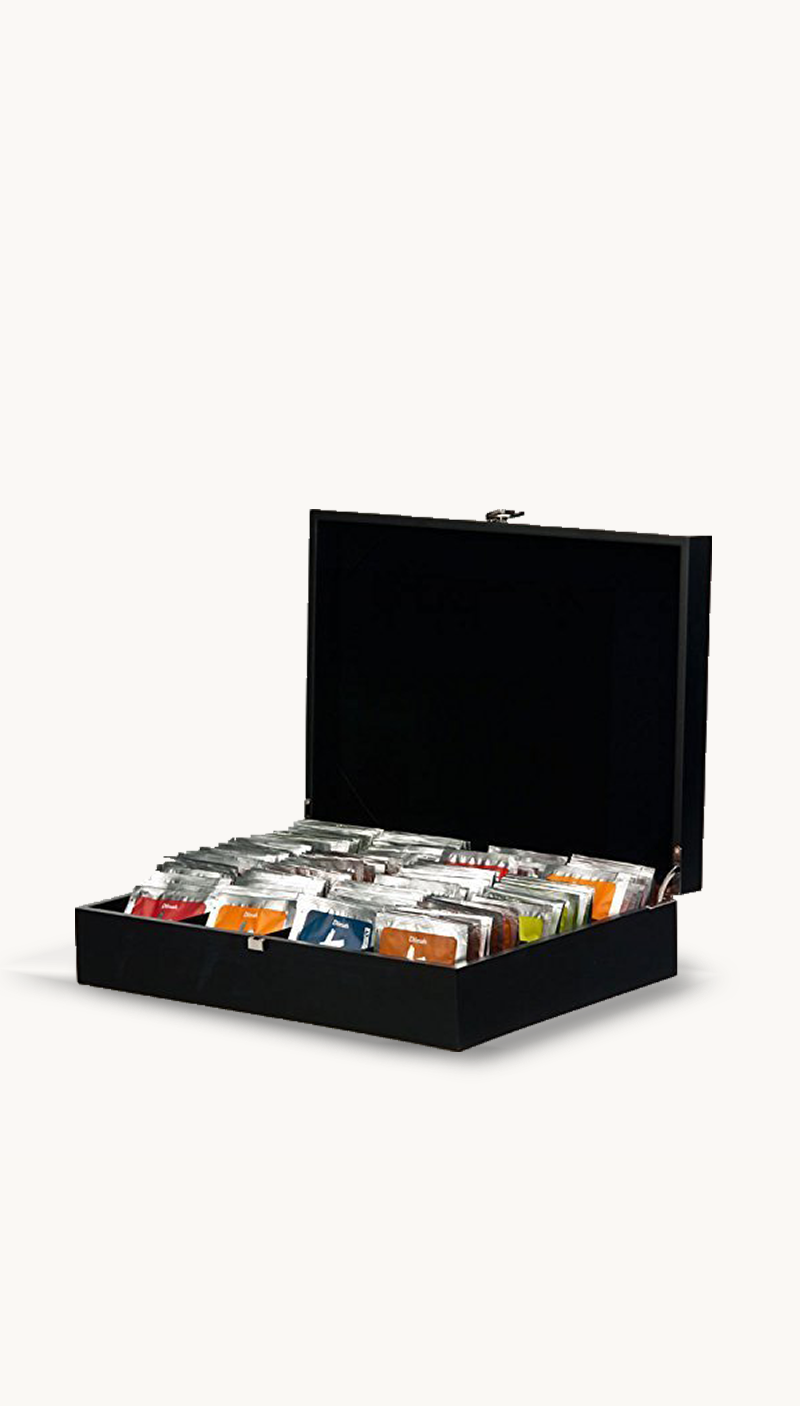 Includes dilmah Black presenter 12 slots Inside: Dilmah t sachet 6 sachet per type total 72 t sachet